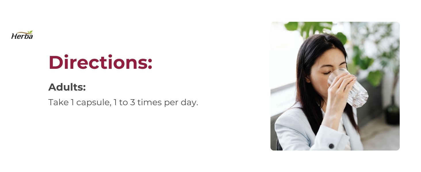 A. Adults can take 1 capsule, 1-3 times per day. You can take the capsules with or without food, depending on your preference. With 90 capsules per bottle, you'll have a 30 to 90-day supply depending on your chosen dosage.
